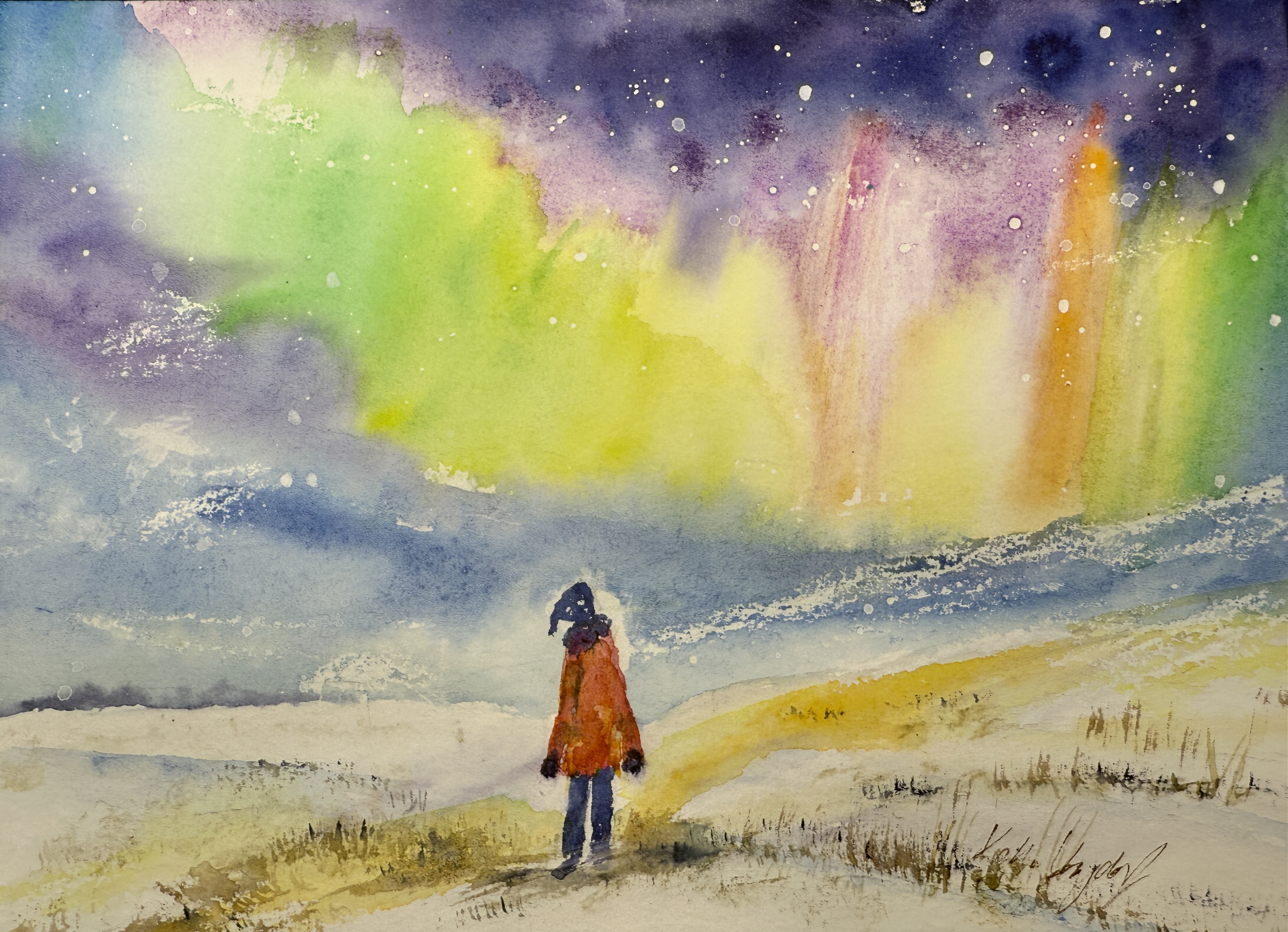 Das erste Mal in meinem Leben konnte ich Nordlichter beobachten. Was für ein Erlebnis. Morgens gegen 1.00 Uhr durch Wald und Wiesen zu pirschen, ist schon für die Gefühlswelt sehr intensiv. Dann aber auf einem Hügel zu stehen, ringsum nur der gefronene See, die erstarten Wälder, die geheimnisvollen Geräusche und dann dieses zaubrhafte Licht am Nordhimmel. Dafür lohnt es sich definiv die Nacht mal anders als gewohnt zu verbringen.